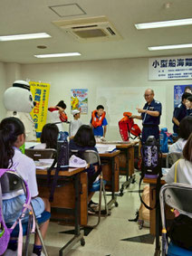7月20日姫路木場ヨットハーバーにて姫路海上保安部、姫路ヨット協会の協力を得て、「親子の海の安全講習会」とヨットでの「セールトレーニング」を実施し、参加の小学生や保護者が海の安全について学びました。